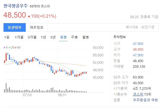 한국항공우주 주가
